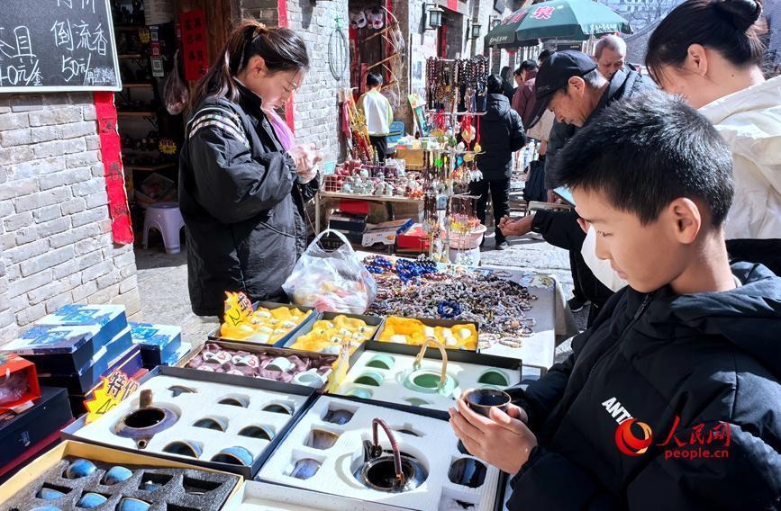 古镇上人头攒动。 人民网记者 时岩摄 人民网郑州2月19日电 (时岩、侯琳琳)正月十五刚过,河南省禹州市神垕古镇就迎来新一轮旅游热潮。来自全国各地的游客纷至沓来,兴致勃勃地感受千年古镇的文化气息,体验钧瓷制作的独特魅力。